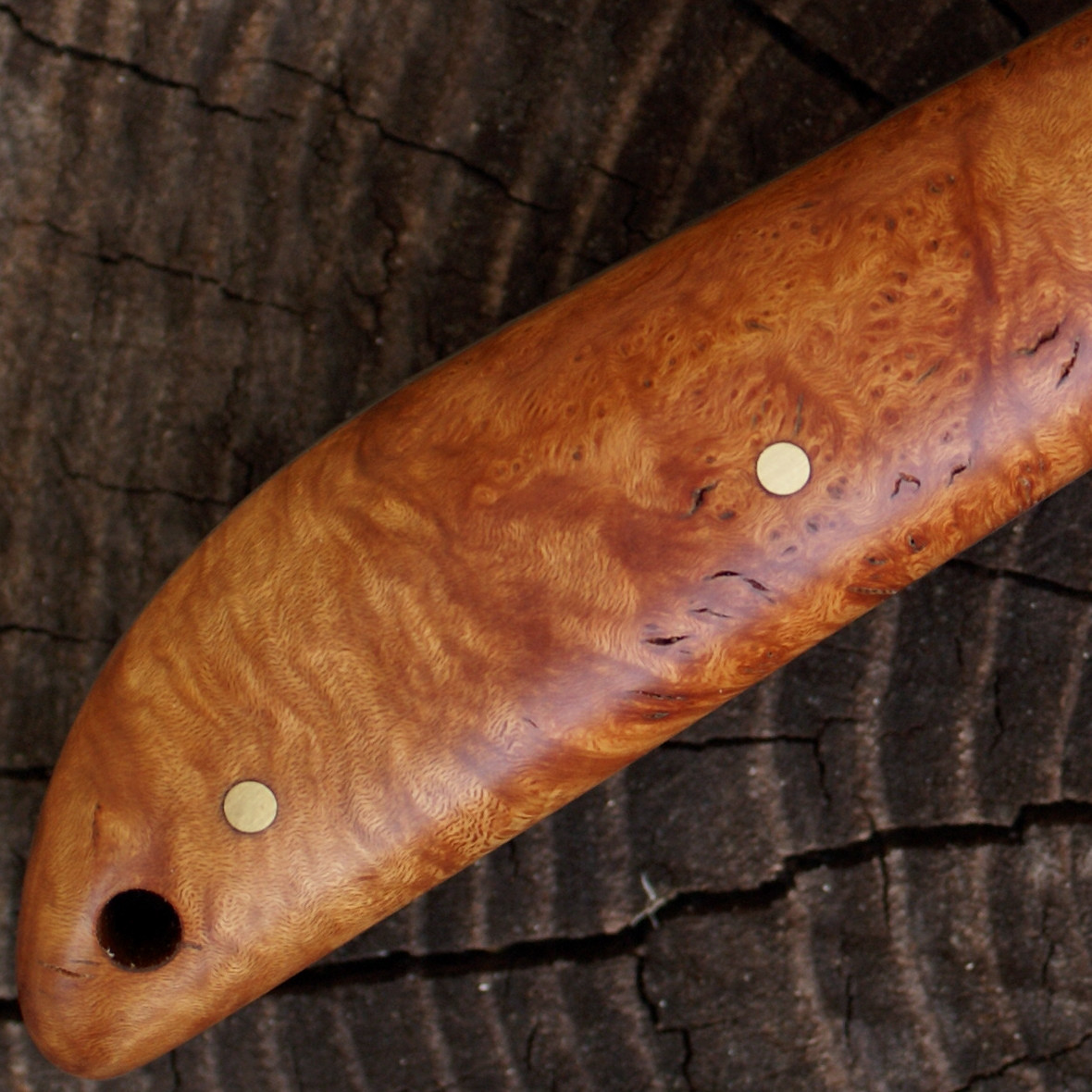 Les bois utilisés sont en majorité des essences locales ayant subi au moins un an de séchage par centimètre de diamètre à la coupe. Je travaille aussi sur des bois exotiques ou stabilisés sur demande