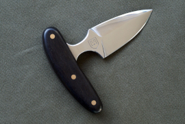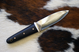 Acier 100C6, 9cm de lame, montee en soie noyée rivetée, 3mm d'epaisseur, manche en ébène